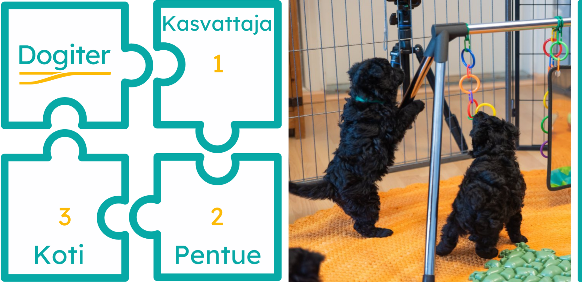 Kasvattajille suunnatut palvelumme ovat Kasvattaja: Perusosa ja Pentue: Viikko-ohjelma.